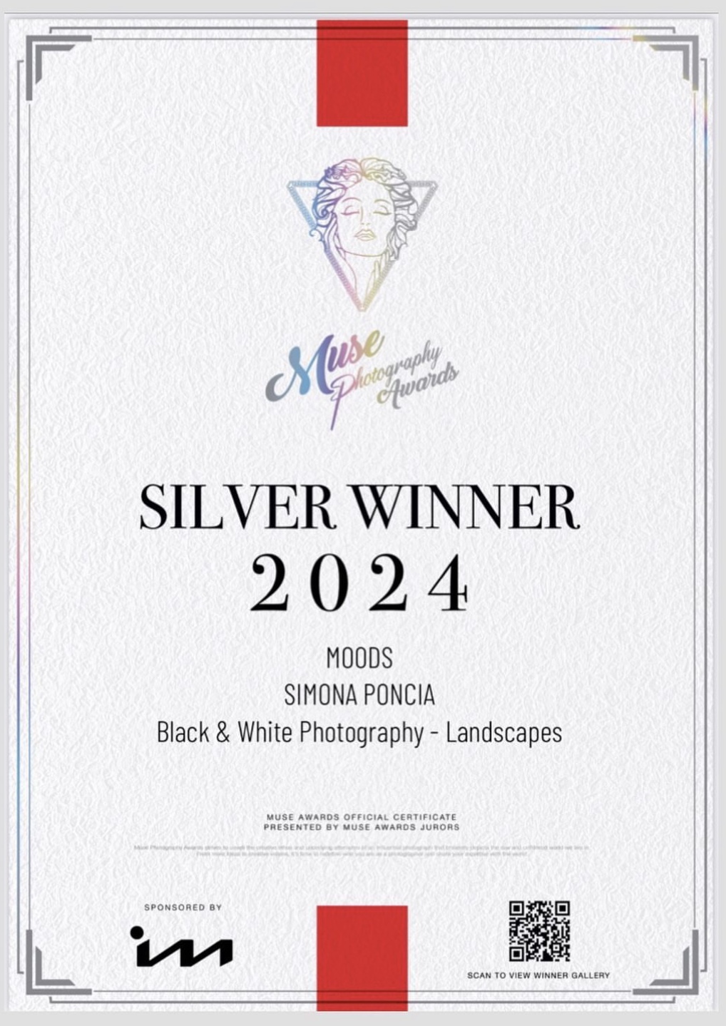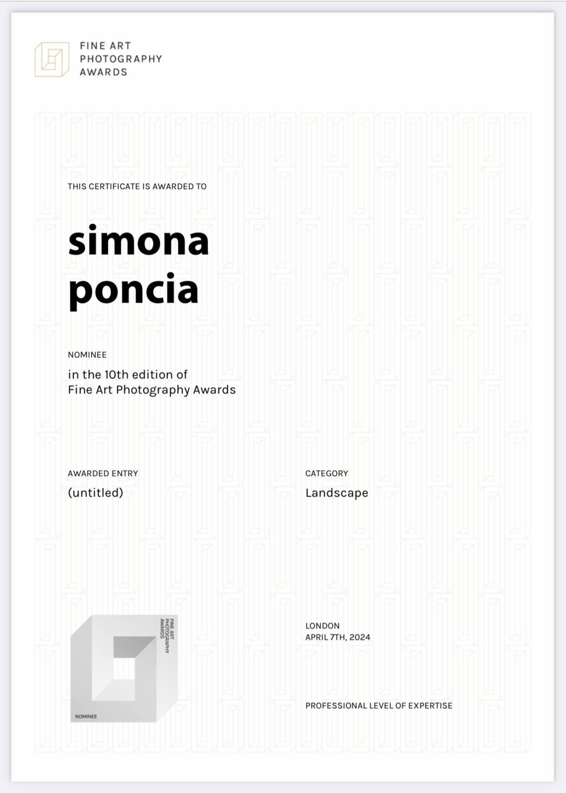 About 7th fapa NomineeFine Art Photography Awards Probiennale 2021Padiglione Spoleto - Chiesa della Pietà- Veneziadal 29 maggio al 2 giugno Honorable Mentioncategoria Portrait"Elena e Tristano" Honorable Mentioncategoria Architecture"British Museum" Photo Days Tour - Triestedal 1 Ottobre al 30 Novembre 2021 PX3 De laPhotographie Paris Black and WhiteSpider Awards 2021 Presentazione del Catalogo "Artisti di oggi e di domani" II edizione - Gangemi Editore Tifa - Tokyo International Foto Awards 2021 PEOPLE - ROMA FOTOGRAFIA Bresciani Visual Art - Romadal 4 al 26 giugno 2022 SPAZIO - VISIONI INTRECCIATEdal 21 MAG - 15 AGO 2022Villa dei Cedri - Valdobbiadene Treviso Photographic Festival 2022dal 6 al 25 settembre 2022 MOSTRA "VISIONARY" -Galleria Angelica Roma - dal 1 al 9 aprile 2022 Honorable MentionTokiofotoawards 2022 1st place Portrait Photography Contest2023 Honorable MentionTokiofotoawards 2023 Honorable MentionMonochrome Awards 2023 SilenceInternational group exhibitionPH21 Gallery - Budapest - 9/30 marzo 2024 SILVER WINNERMuse Photography Awards 2024 FINE ART PHOTOGRAPHY AWARDS 2024 « ‹ 2 di 2 › »